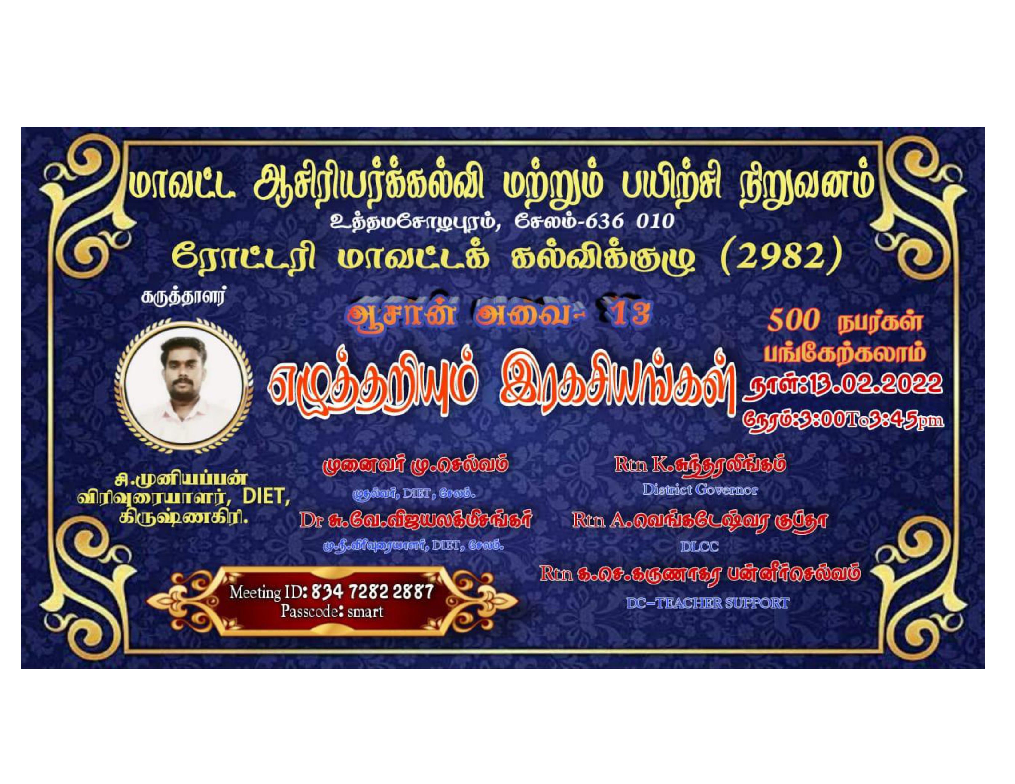 Webinar Programme on "எழுத்தறியும் இரகசியங்கள்" 13.02.2022 at 3.00 pm - 3.45pm
