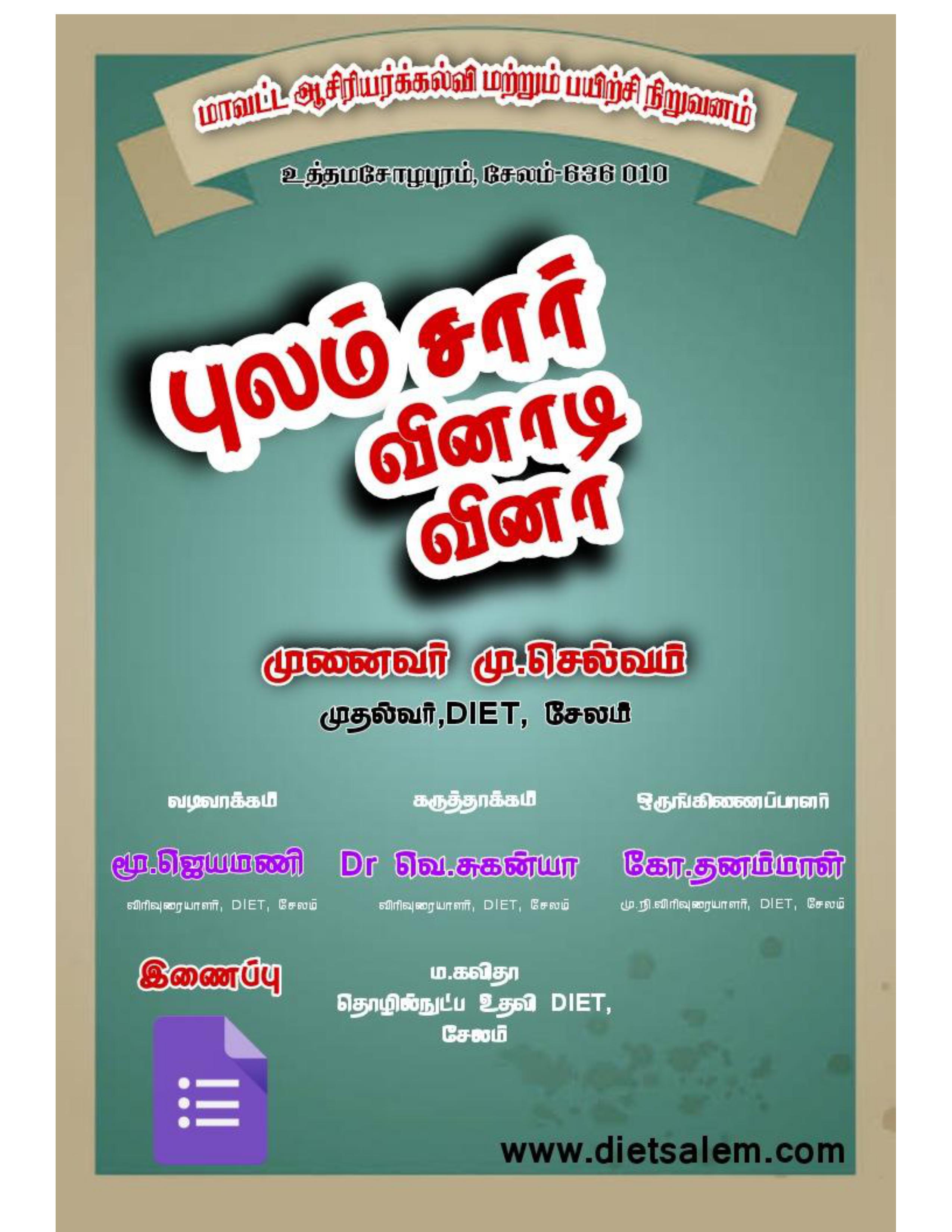 DIET-Salem,E.T branch Quiz programme on "புலம் சார் வினாடி வினா"